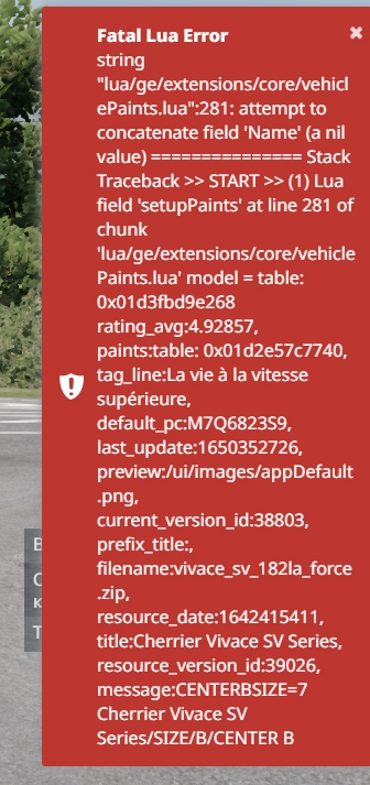 карта запускается, но когда пытаюсь выбрать машину вылазит эта херня. список машин пустой (ни модов, ни оригинальных машин нет). из модов ничего нового не устанавливал, на прошлой версии все запускалось. как новую поставил стала такая фигня вылазить. помогите пожалуйста, заранее благодарю!