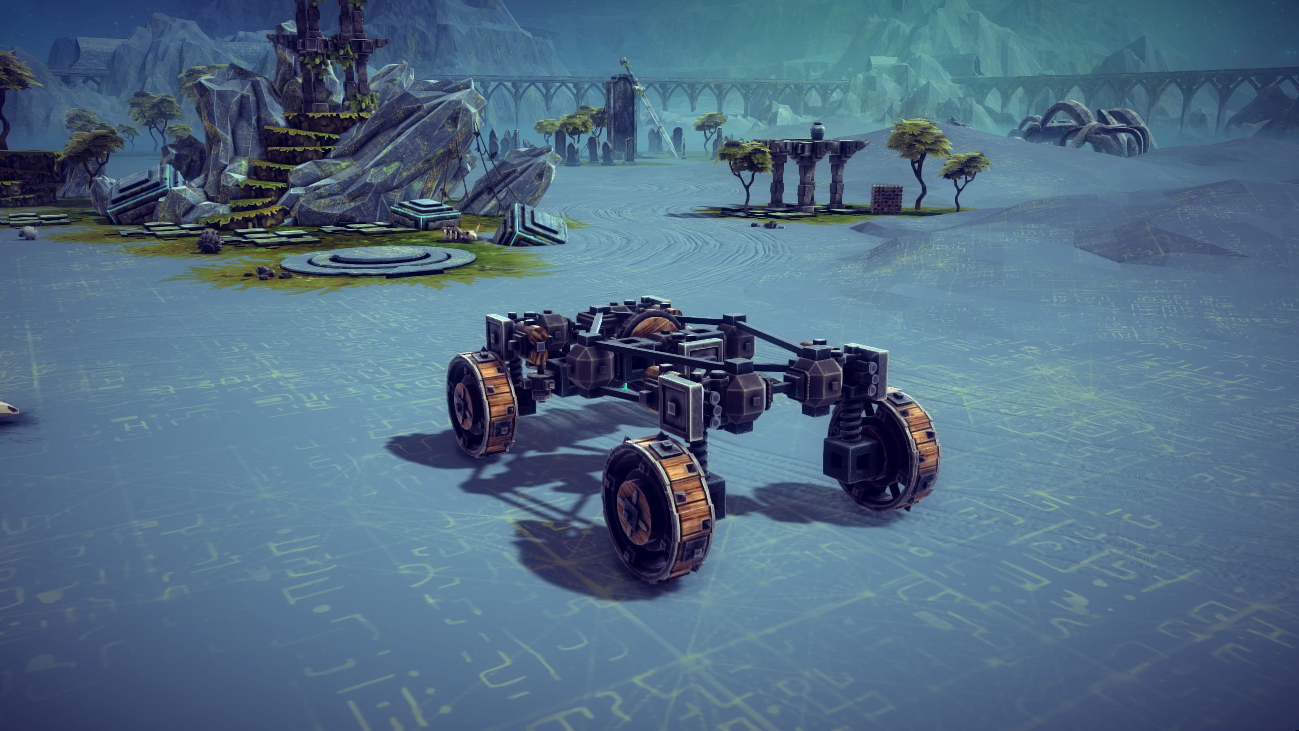 Одна из ранних работ которую я только решил выложить, сделана на версии 0045 еще в 2017 году когда не было функции "Авто-возврат" у блоков "Рулевой шарнир" и "Рулевой блок" а добавлялся такой функционал только через мод а без модов нужно было использовать поршни и выдумывать механизмы для комфортного управления.