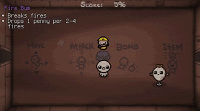 Fire Bum: тушит костры, порождает 1 пенни за 2-4 потушенных костров (костры все еще могут дропнуть регулярные награды, он может сломать синий и фиолетовый костёр).