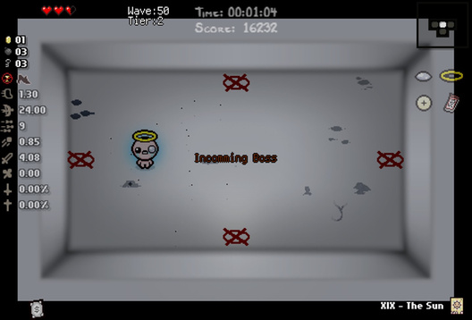 * Выбравшись из комнаты означает смертную казнь. Большинство Телепортировать предметы исчезли (кроме проклятого глаза, теперь смерть-это проклятие) но красные сундуки, таблетки(при V низкий шанс) и карты могут телека вам.