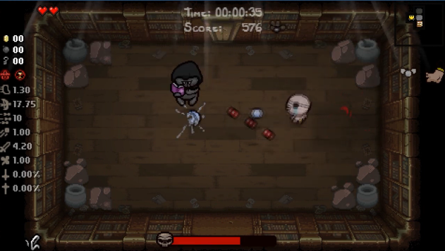Босс атакут 3 слезами за раз в первой фазе, а так же 5 слезами или бримстоуном во второй