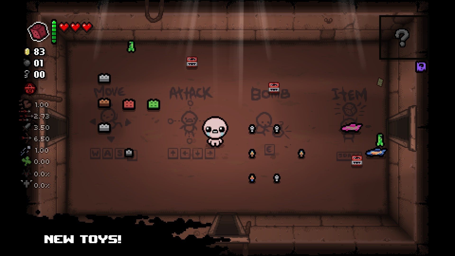 В подвале появилась новая блестящая коробка, в которой много интересного! Если вы когда-нибудь задумывались, почему в подвале нет гигантской пилы, которая могла бы кромсать и разрывать ваших врагов, или набора игрушек, которые могли бы сражаться за вас, то теперь вы можете получить и то, и другое!
