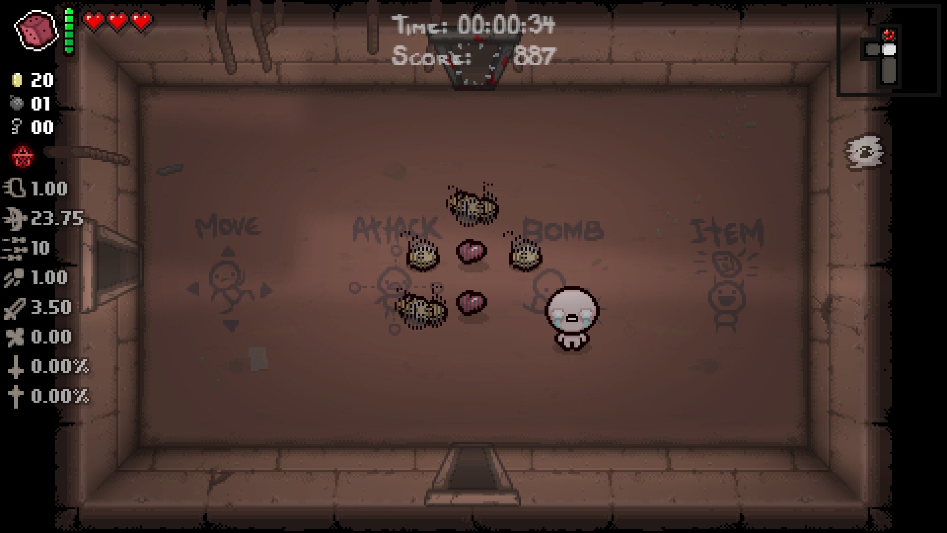 Однако, когда Айзек имеет при себе предмет, все монеты, ключи, бомбы и сердца, которые увидит Айзек, будет трудно распознать, и они будут постоянно переключаться между собой. Это потому, что все они станут новыми особыми подбираемыми предметами "Дислексия"!