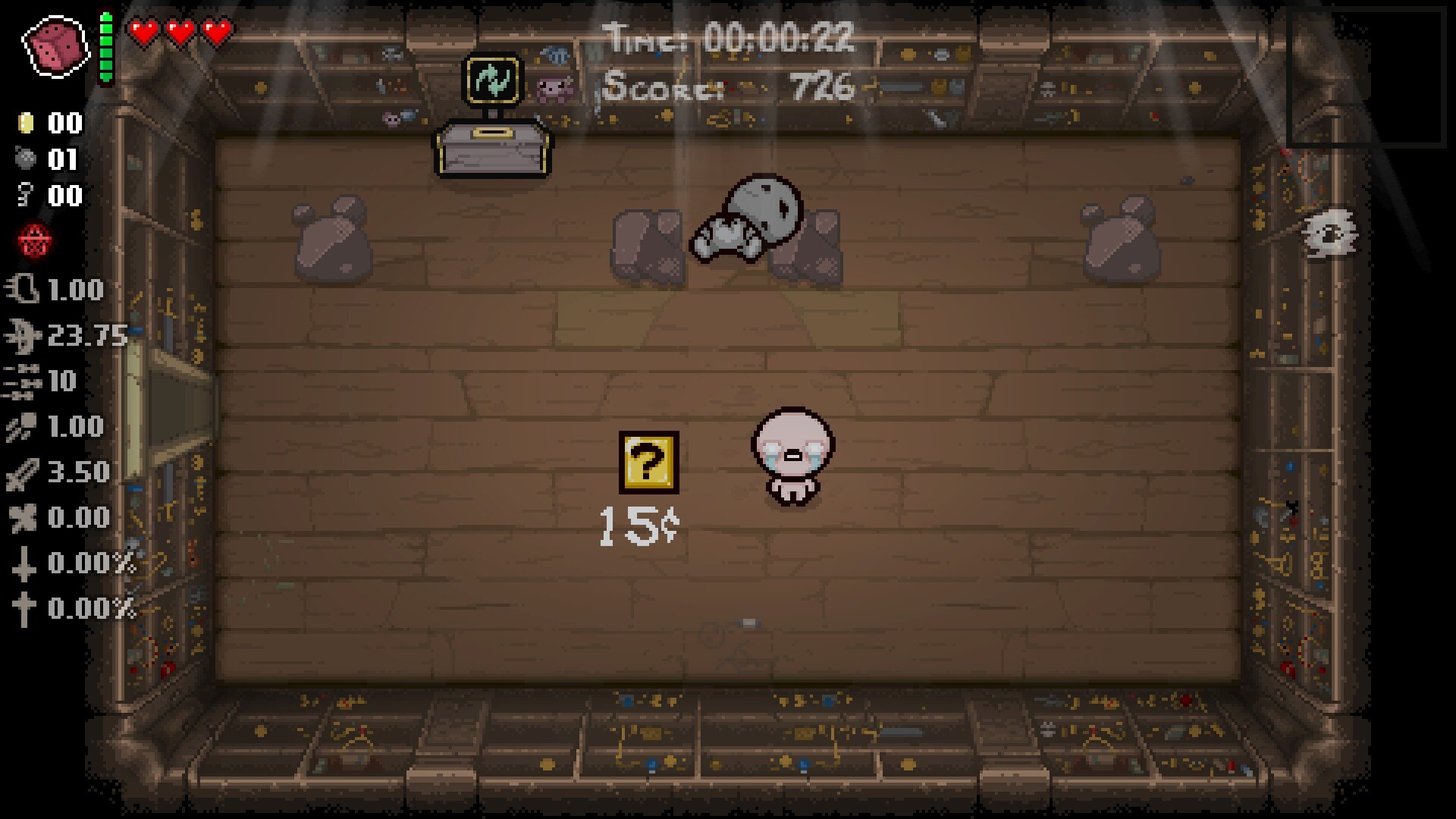 Данный мод добавляет новый пассивный предмет "Дислексия", который можно найти в магазинах и золотых сундуках. При подборе предмета повышается шанс появления десяти центов или золотого сундука вместо обычной монеты или сундука, поскольку Айзек теперь плохо различает цвета.