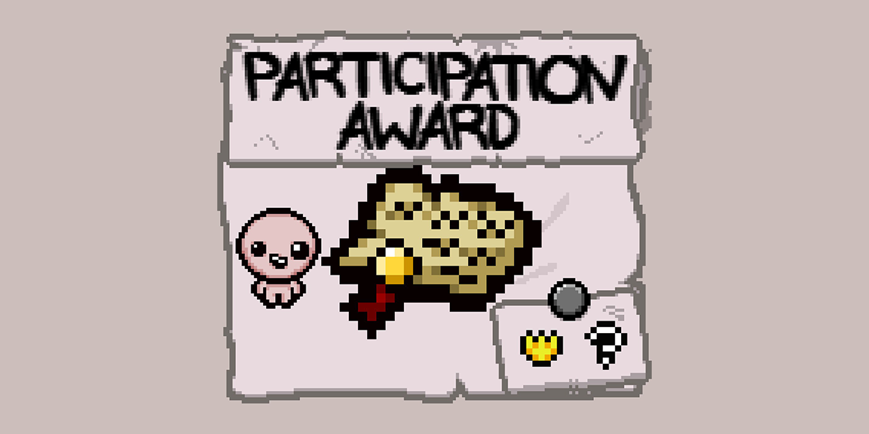 Бывало ли у вас такое, что забег шёл не так хорошо, как хотелось бы? Тогда этот мод может вам понравиться. Мод добавляет в игру предмет "Награда за участие" который даёт 4 случайные монеты при подборе и увеличивает частоту появления особых или сильных предметов на протяжении всего забега. Этот предмет можно найти в сокровищнице или в секретной комнате.