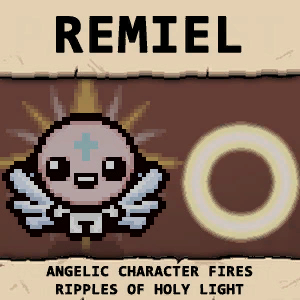 Ramiel-это ангельский персонаж, который имеет уникальный тип атаки, всегда получает ангельские комнаты и превращает черные сердца в костяные сердца.