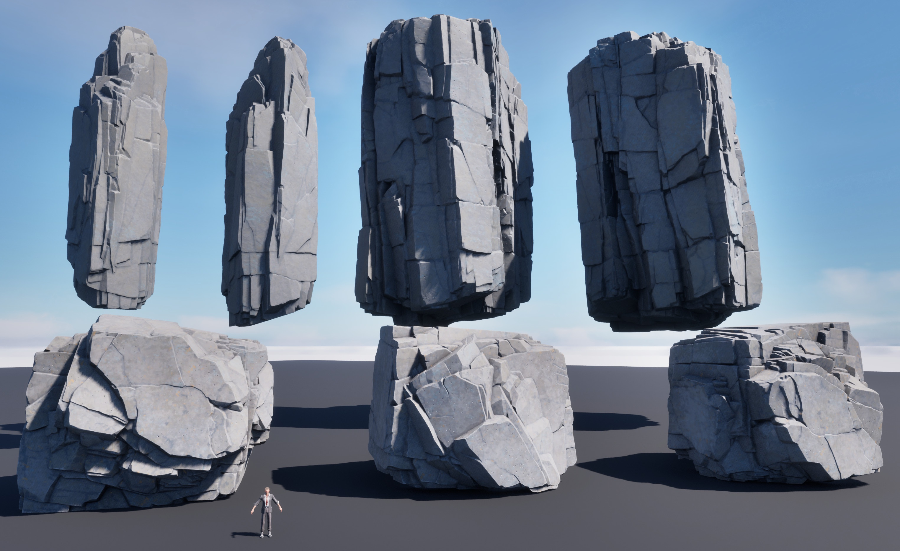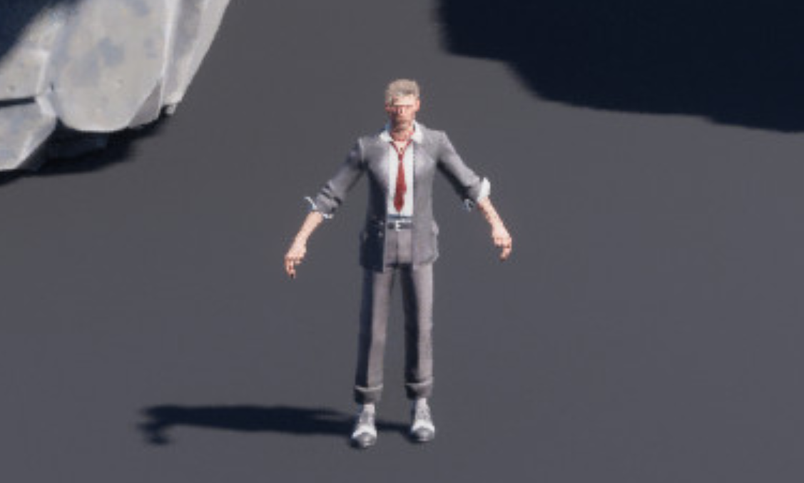 Теперь, когда мы увидели злодея, вам, возможно, захочется познакомиться с героем. Если вы внимательно рассматривали изображения с элементами окружения, вы могли заметить, что рядом с камнями находится небольшой персонаж, используемый в качестве масштабной модели, что может быть первым взглядом на главного героя. Фигура выглядит как мужчина в сером костюме и галстуке, идеально вписывающихся в эстетику середины века, которой известна серия.
