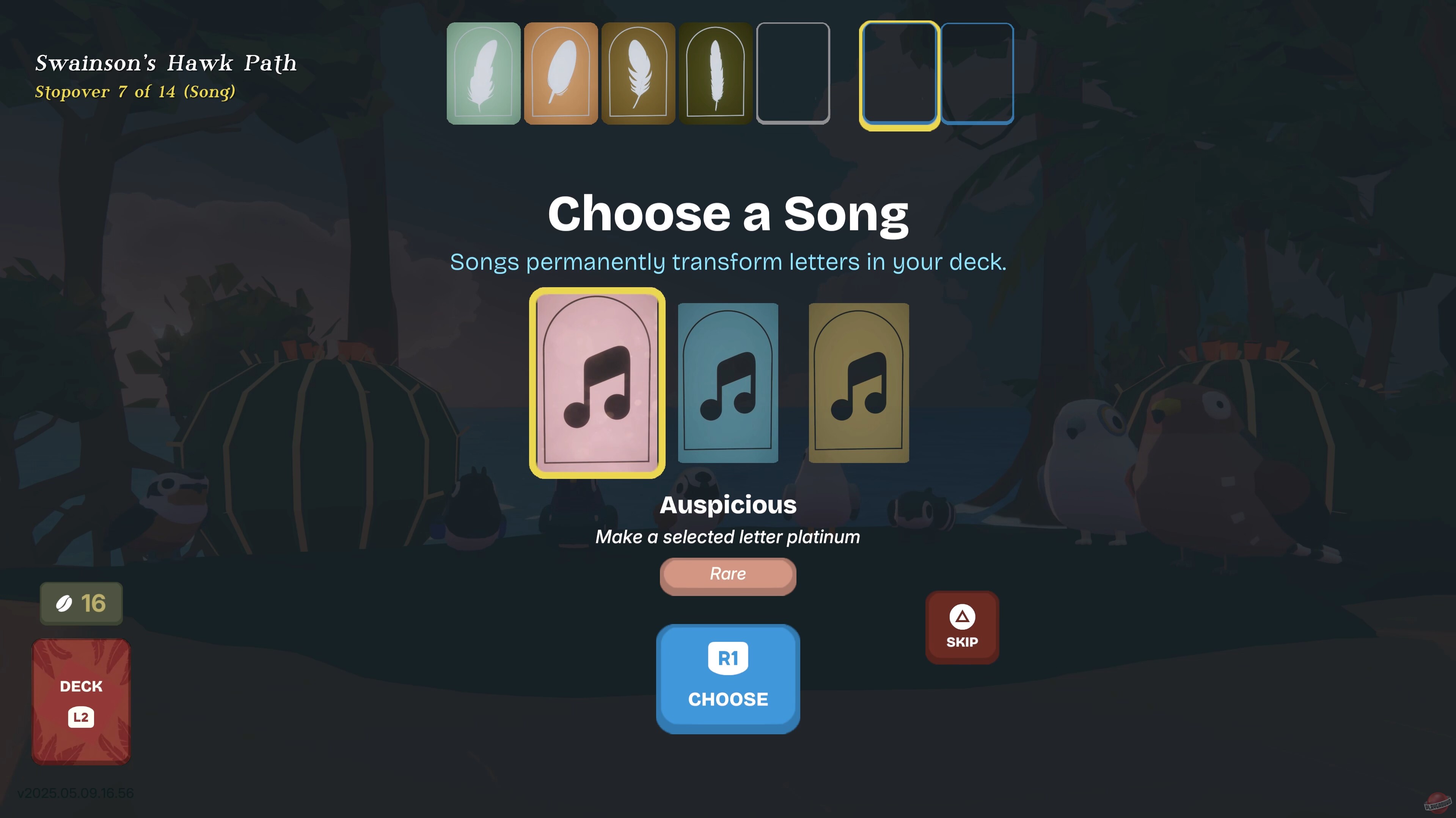 Главное отличие от обычных словесных игр — система «перьев», которые кардинально меняют правила подсчёта очков. Это не просто бонусы, а модификаторы, которые могут сделать некоторые стратегии невероятно выгодными. Плюс есть «песни» — ещё один слой модификаторов. В итоге получается больше шести миллионов возможных комбинаций.