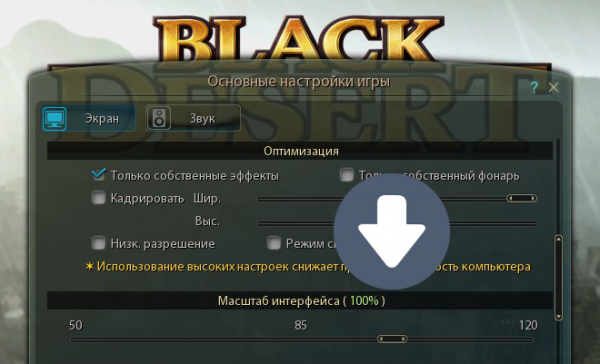 При первом запуске игры Black Desert масштаб интерфейса временно установлен на 85%. Для корректного отображения информации настоятельно рекомендуется изменить масштаб в настройках на 100%.