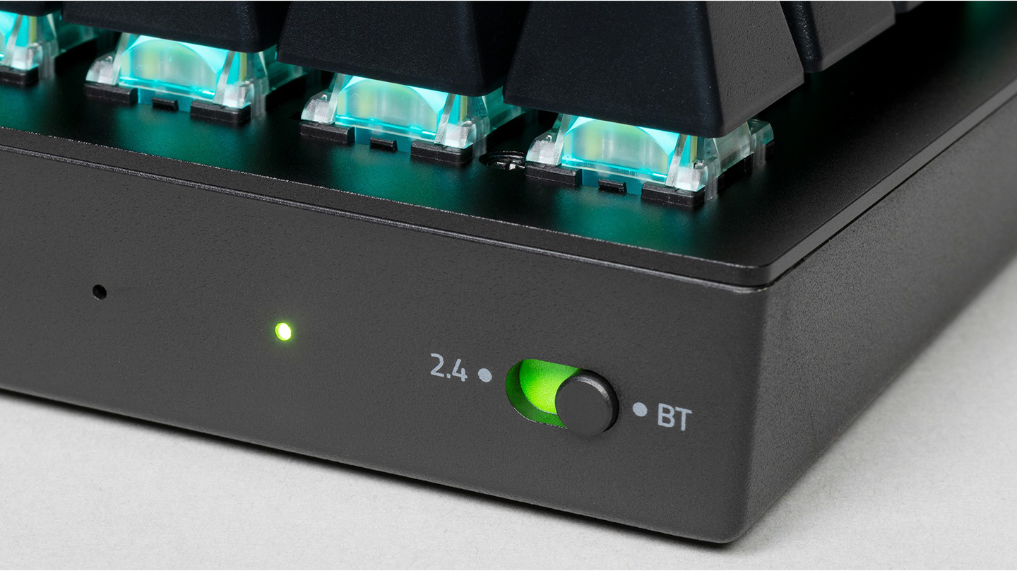 Эта беспроводная 65% механическая игровая клавиатура оснащена нашей самой передовой беспроводной технологией для игр с малой задержкой и сверхчувствительностью ввода - это стало возможным благодаря оптимизированному протоколу передачи данных, сверхбыстрой радиочастоте и плавному переключению частот в самых шумных средах, насыщенных данными. Благодаря поддержке нескольких устройств упростите настройку своего сетапа, подключив беспроводную мышь и клавиатуру к одному адаптеру - функцию, которую можно активировать в наших последних периферийных устройствах Razer HyperSpeed.