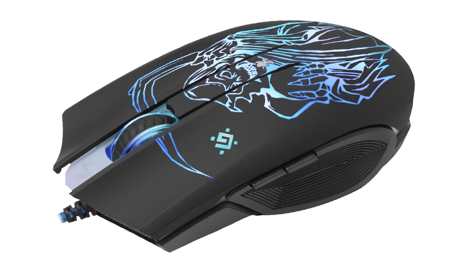 Игровая мышь с отличным оптическим сенсором и действительно необычным дизайном! Фишка этого манипулятора — ни на что не похожая переливающаяся подсветка. Удобная эргономичная форма и прочное, приятное на ощупь, прорезиненное покрытие обеспечивают надежный хват. Пять программируемых кнопок, две из которых расположены под большим пальцем и широкое прорезиненное колесо прокрутки с подсветкой удовлетворят все потребности игрока. Высокопрочный долговечный кабель, ферритовый фильтр и позолоченный USB-коннектор обеспечат быструю и точную передачу сигнала без помех. Мышь поддерживает 4 режима разрешения — 800, 1800, 2400 и 3200 dpi, выбранный уровень скорости курсора отображается разной интенсивностью подсветки колеса прокрутки. На сайте производителя можно скачать программное обеспечение Defender Game Center, а редактор макросов и эмуляция клавиш клавиатуры обязательно пригодятся заядлым геймерам. В комплекте ваш ждет подарок-сюрприз — удобный коврик для идеальной работы в паре с мышью!