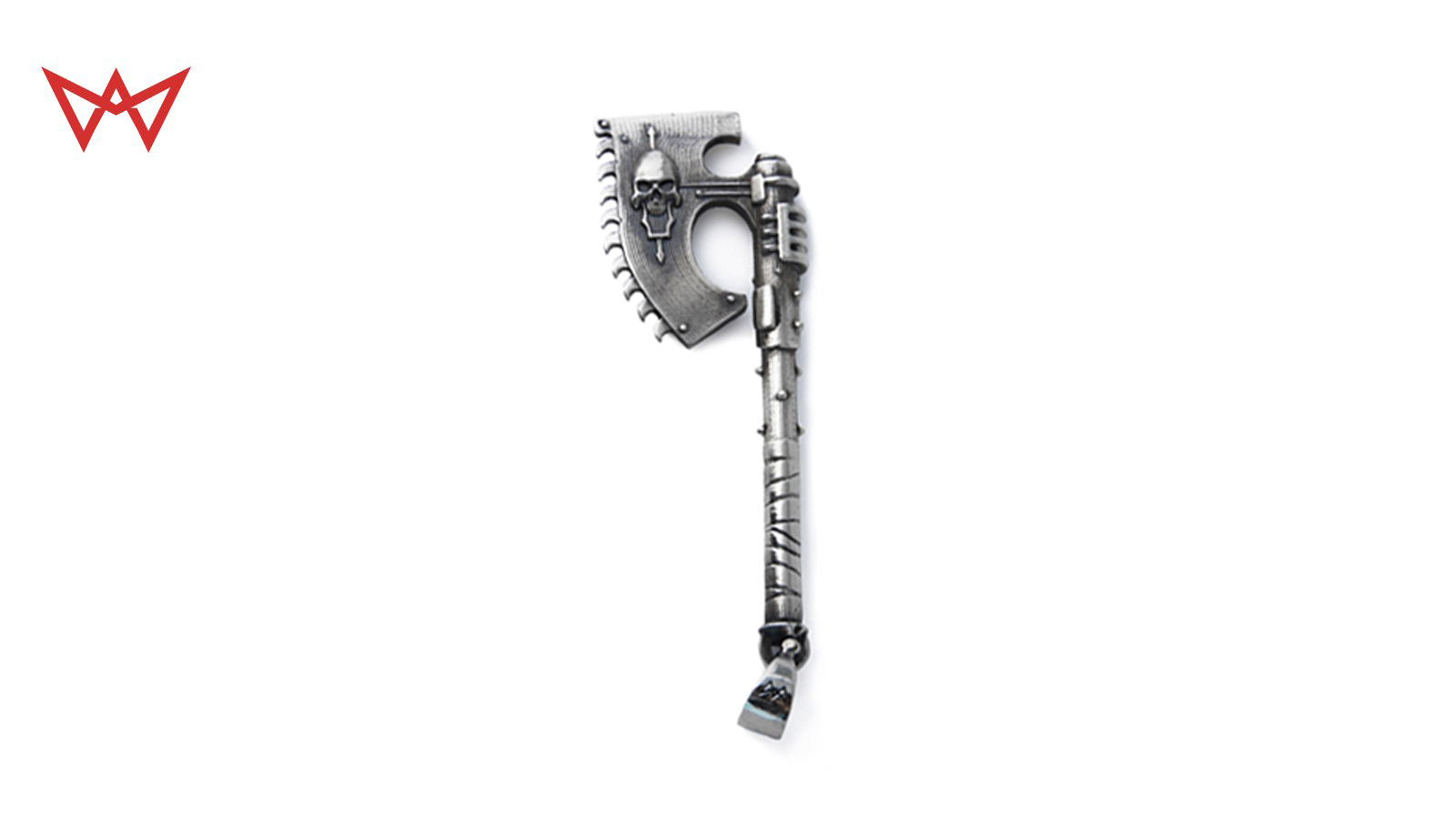 Огромный цепной топор, артефакт из великого крестового похода. Цепные топоры навсегда стали символом Кхорна и грубой безжалостной силы, рвущей на части воинов Империума. Выполнен из нейзильбера. Изготовлено профессиональной ювелирной мастерской «Мастенариум».