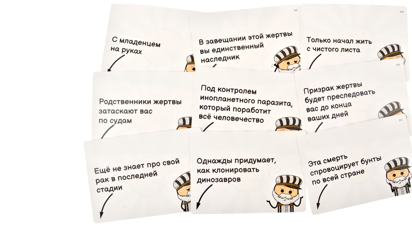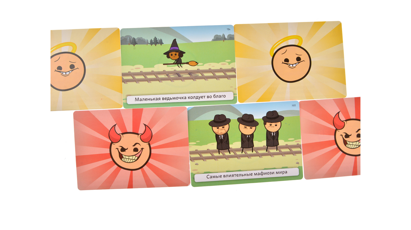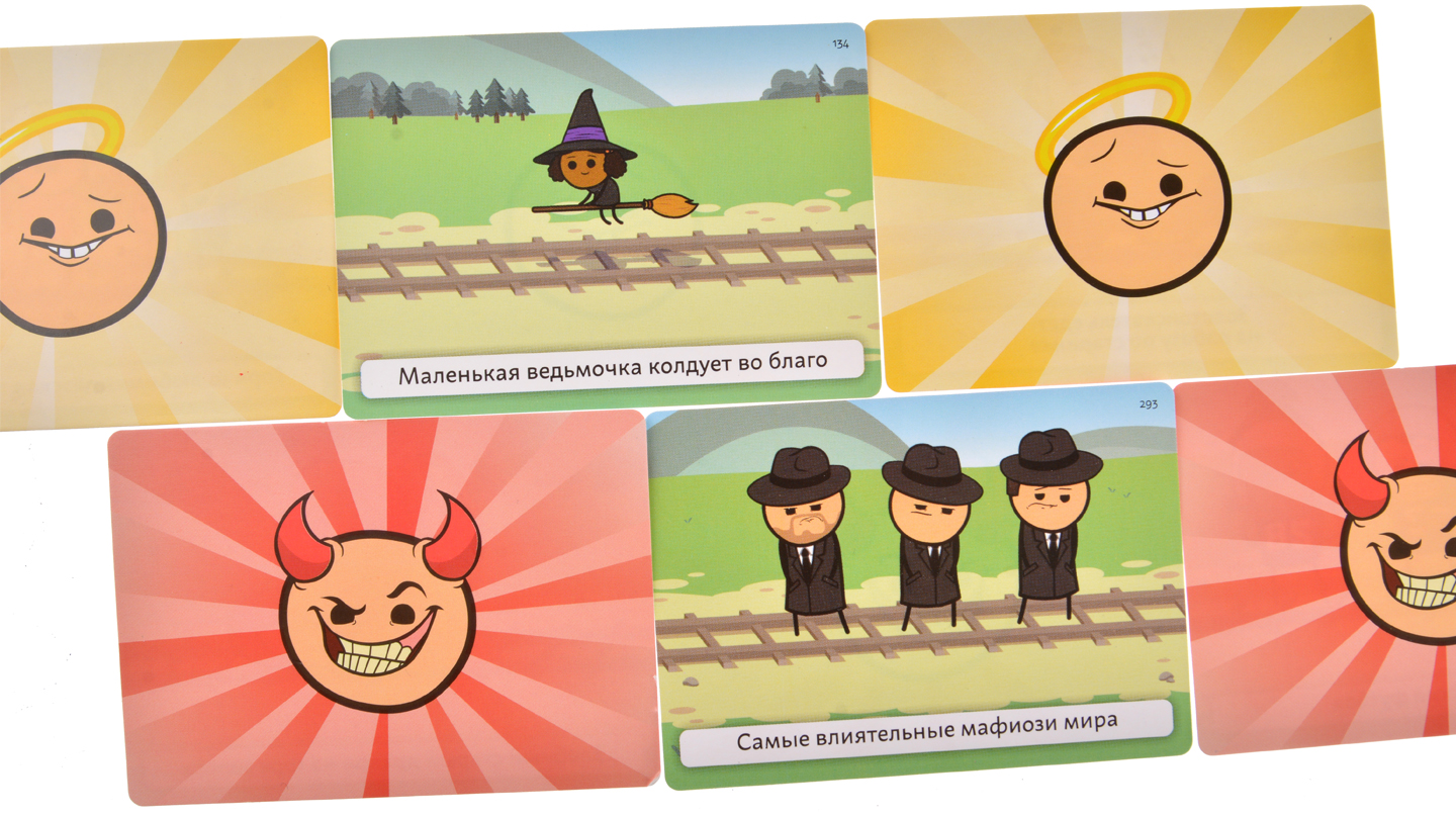 ПодробнееОдин из вас становится стрелочником. Все люди слева от него играют за один путь, все люди справа — за другой. Сначала на рельсах оказываются по одному случайному добряку — от них тает ваше сердечко. Затем команды добавляют на свои пути ещё по одному добряку — такому, которого стрелочник тоже пожалеет. А затем выкладывают на путь соперников по одному негодяю — такому, чьи злодеяния перечеркнут ценность жизни добряков. И вот теперь можно начинать спорить.