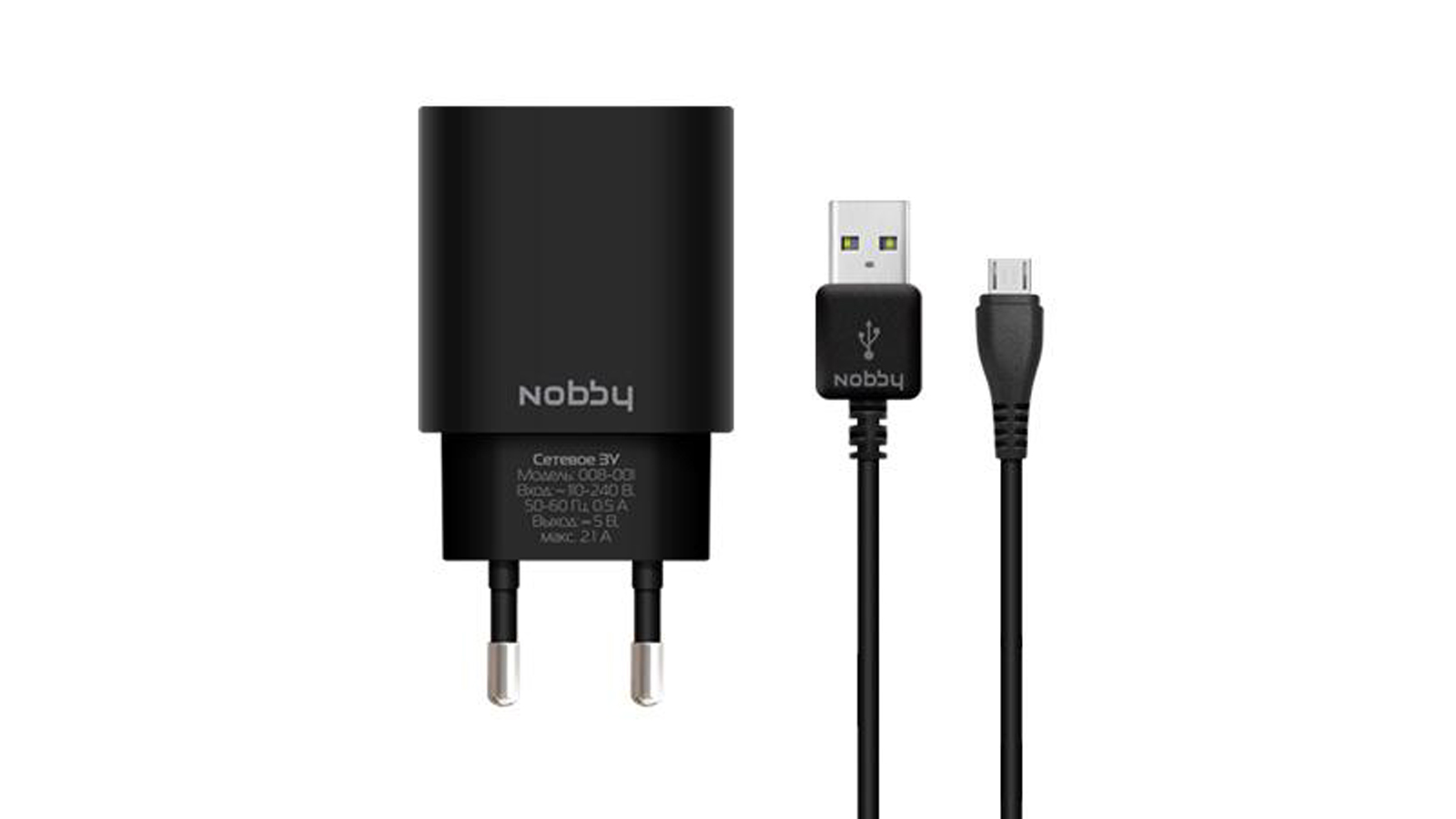 Nobby Comfort 008-001 - Сетевое зарядное устройство + кабель microUSB