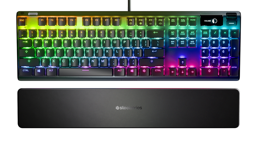 Бескомпромиссная полноразмерная игровая клавиатура с удобной подставкой под ладони и многофункциональным OLED-дисплеем.
