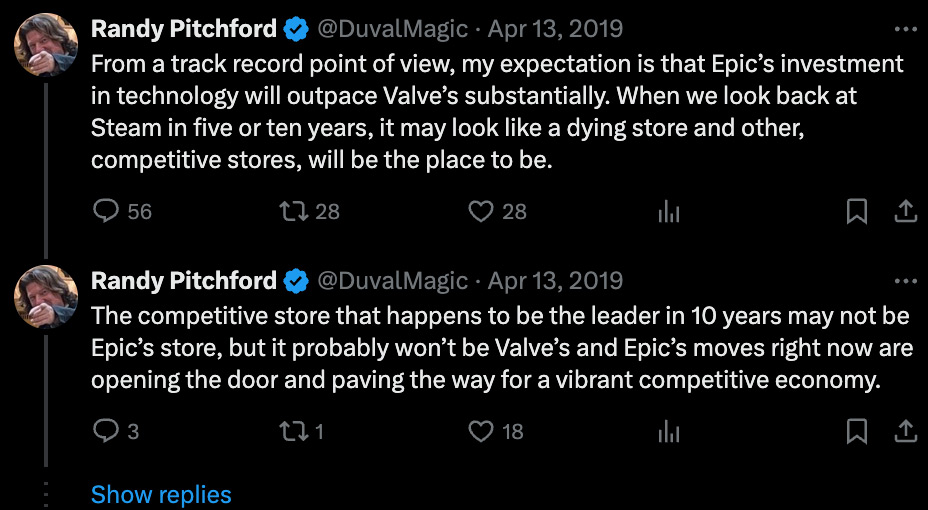 Вероятно, в такой способ Рэнди Питчфорд заигрывает с аудиторией игроков, напоминая о выходе шутере я в Steam уже на старте. Это заметное отличие от Borderlands 3, который сначала был эксклюзивом Epic Games Store. Ранее Питчфорд прогнозировал "угасание" Steam, однако спустя время признал ошибочность своих слов. Теперь разработчик явно делает ставку на широкую аудиторию платформы.
