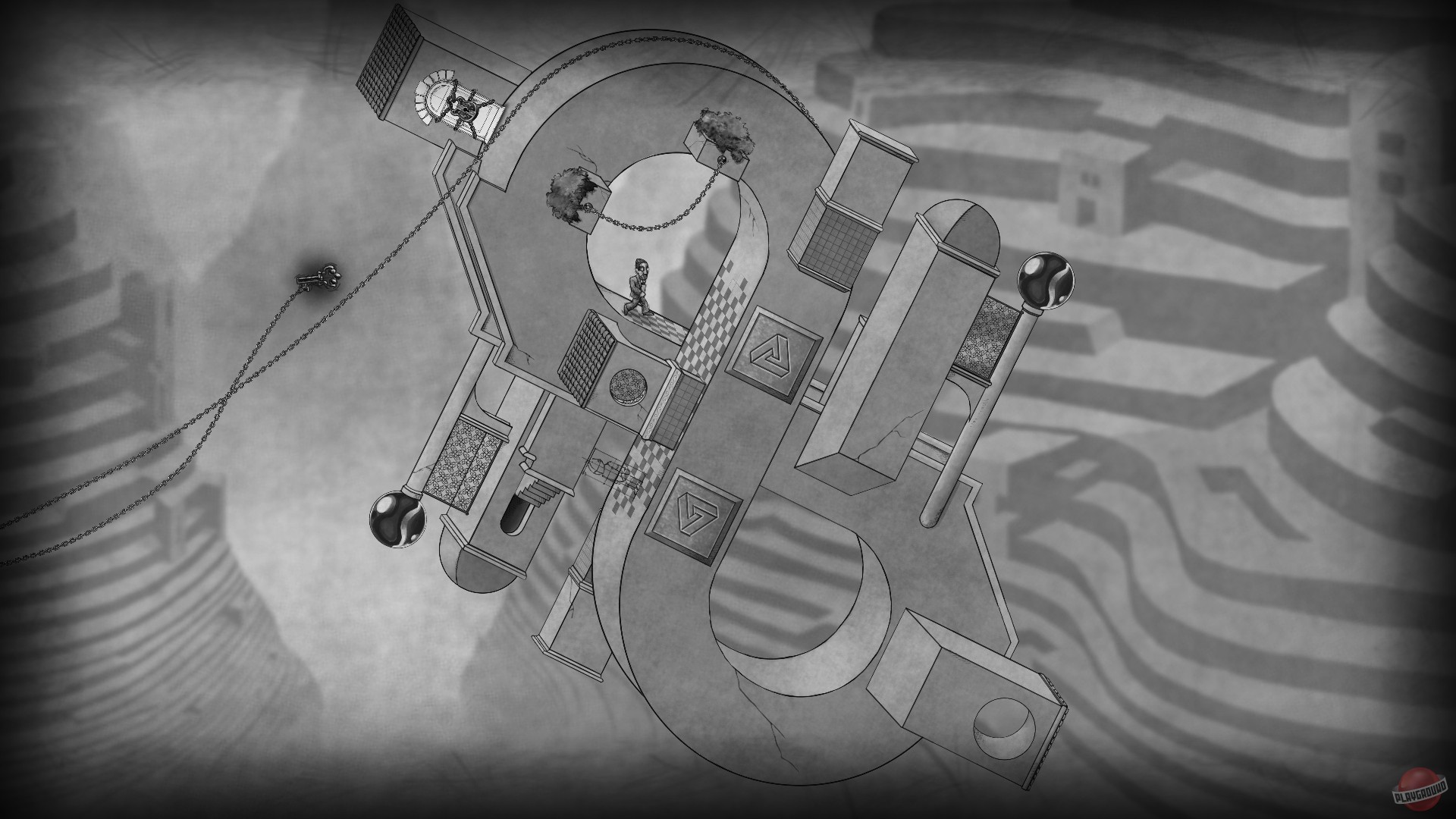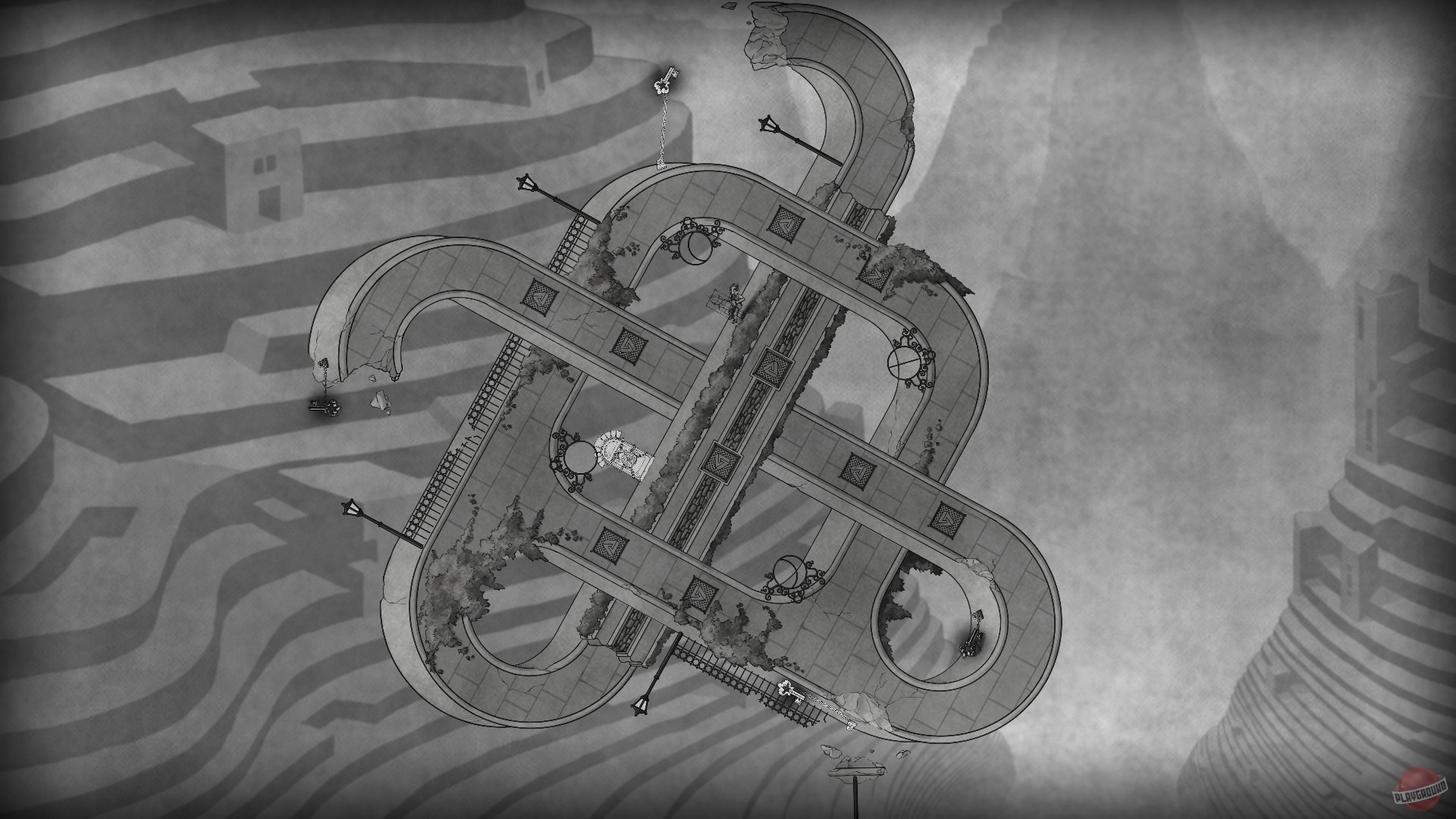 чёрно-белая головоломка, где всё построено на играх с гравитацией. Визуально очень похоже на работы художника Эшера — те самые, где лестницы идут во все стороны, а верх и низ постоянно меняются местами.