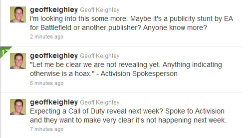 Может это пиар ход от EA? Или может быть, Кейли сотрудничает с Activision, и таким образом хочет запутать нас еще больше?