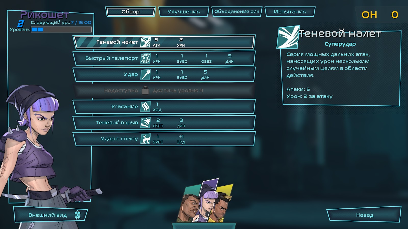 На заработанные очки игрок может добыть новые умения или усилить имеющиеся. Опыт зарабатывается быстро, однако при завершении квеста удастся открыть не более двух способностей за раз. Благо миссий в игре предостаточно — при успешном выполнении особых целей нехватки опыта не будет.