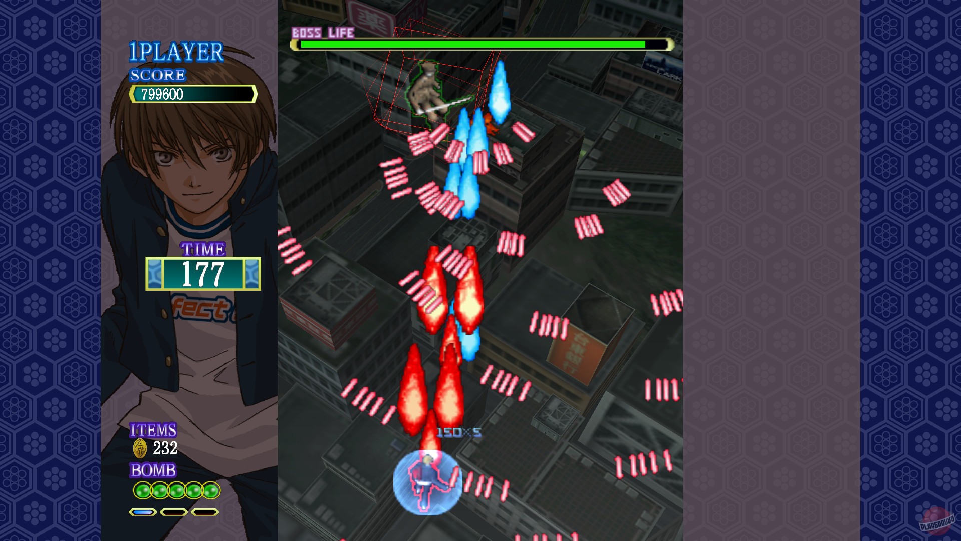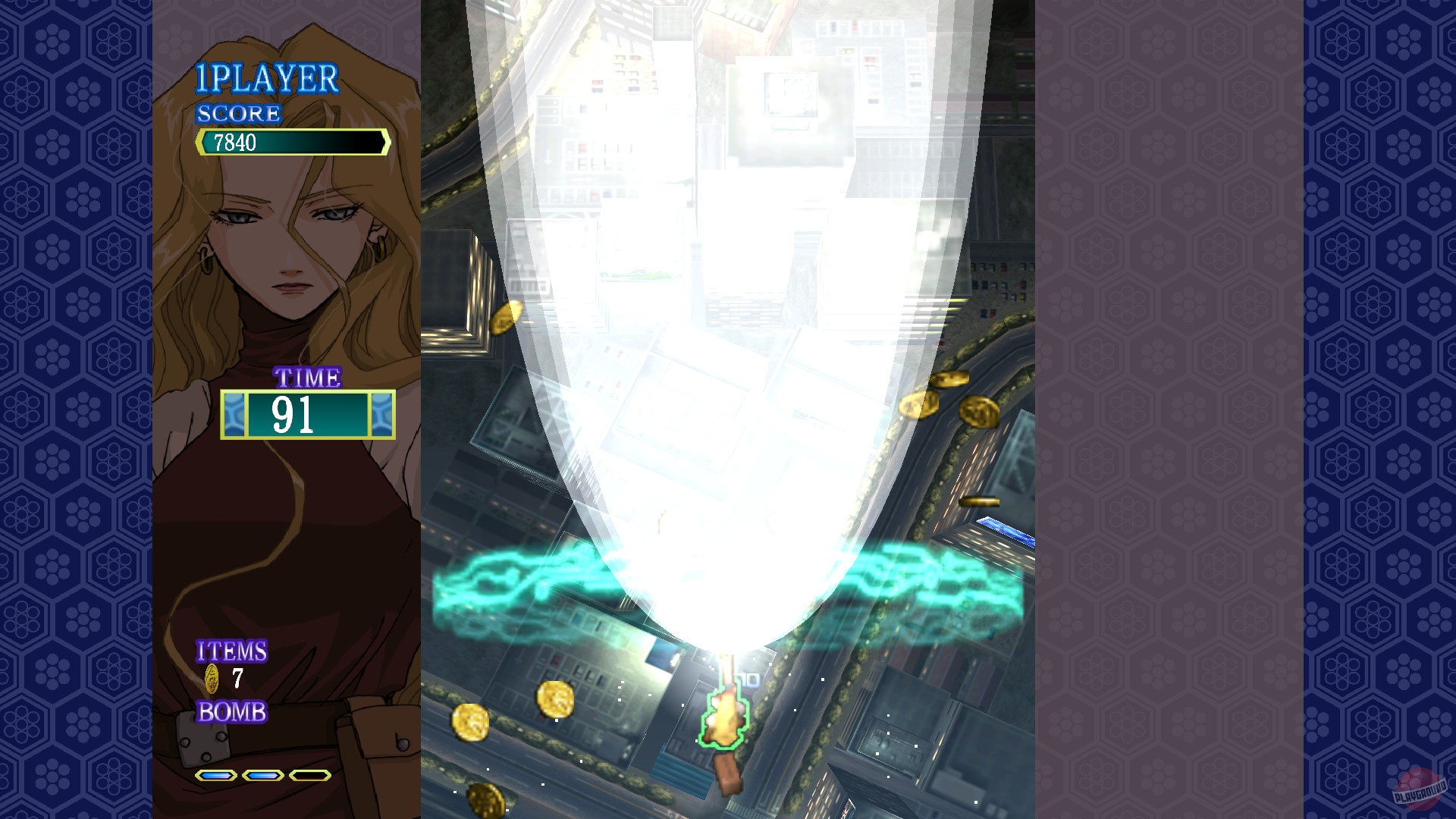 Но нас интересует не столько детективный сюжет, сколько геймплей. Перед нами типичный представитель жанра shoot 'em up. Суть проста — летим и расстреливаем всё, что движется. Но в Castle of Shikigami разработчики добавили пару интересных механик.