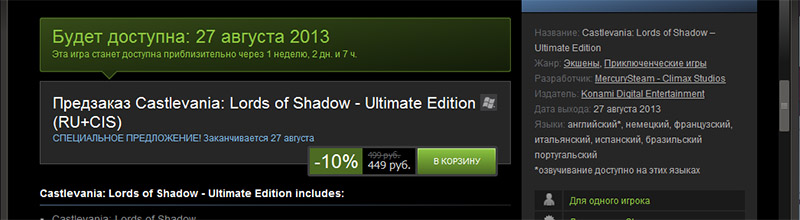 Если ты про то что в скобках (RU+CIS) - то это не обозначение локализации, а пометка о том что игра имеет региональное ограничение на использование (Россия+СНГ). Т.е. игра, купленная в России и странах СНГ, может быть запущена только в России и странах СНГ. Обычно это делается для раздельного мультиплеера, или когда в игру добавляют\изменяют что-то специально для этого региона (вводят цензуру например). Странно что она появилась на Кастлевании. Ну а в списке поддерживаемых языков русский не значится, значит пока не добавлена поддержка даже субтитров. Скорее всего уже и не добавят, тогда придется ждать любительские сабы.