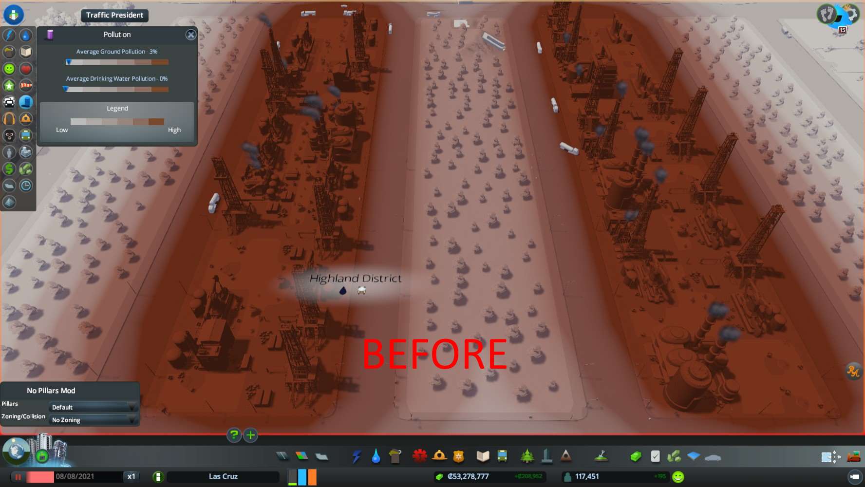 Выберите, хотите ли вы полностью удалить любые загрязнения (земля, вода или шум), а также мертвых людей, мусор и преступления. Может также максимизировать городскую привлекательность, развлечения и стоимость земли.