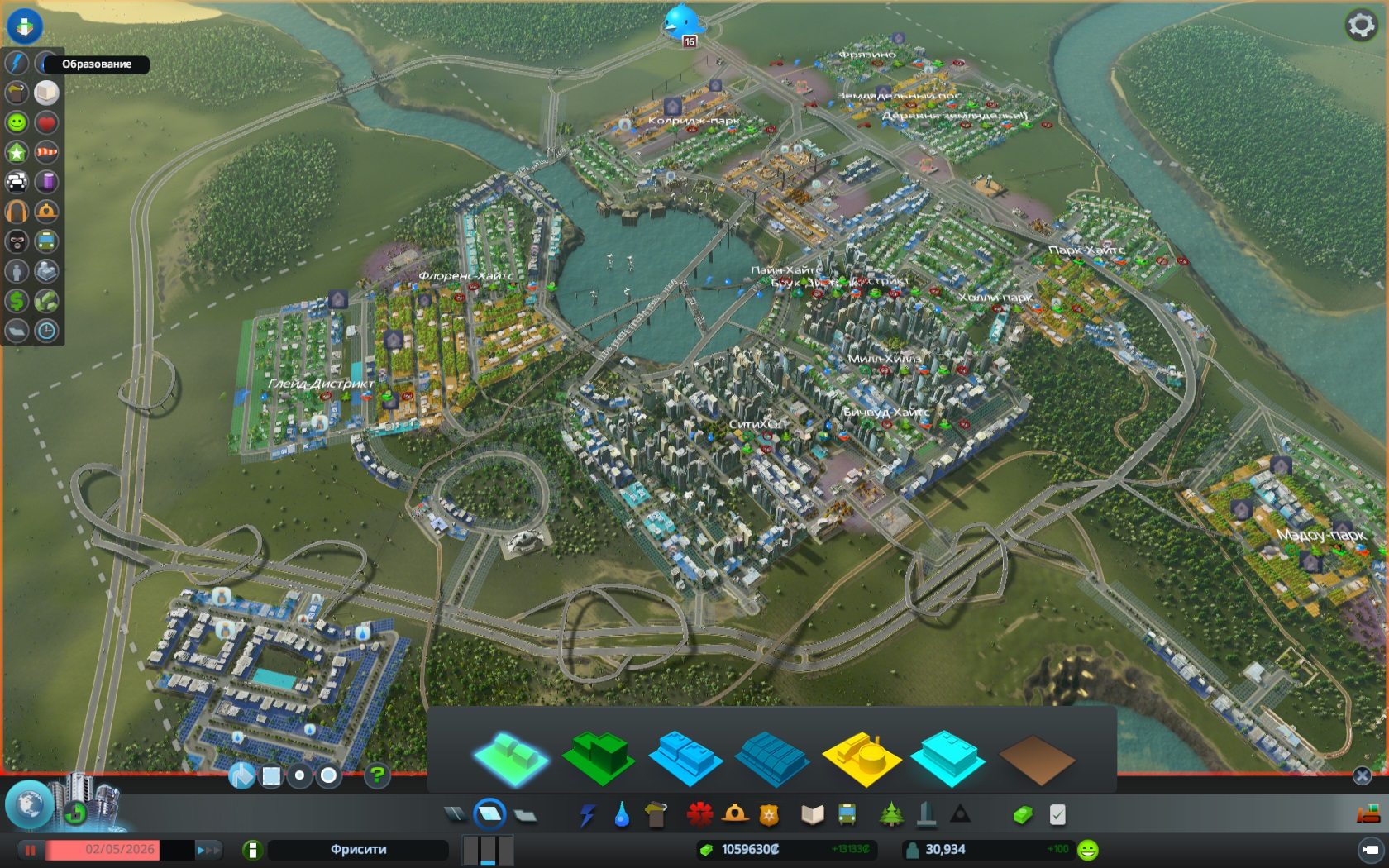 Обученные люди, не будут работать на лесопилках, сх, нискоуровневых заводах или низкоуровневых коммерческих зонах. Следовательно у тебя кучу низкоуровневых построек которые подавляют спрос, а жители умные и им негде будет работать (Только в крайнем случае они будут работать в таких зданиях) и толпы безработных грамотных людей будут понижать спрос на жилье. В итоге у тебя спрос на все опускается в нуль.