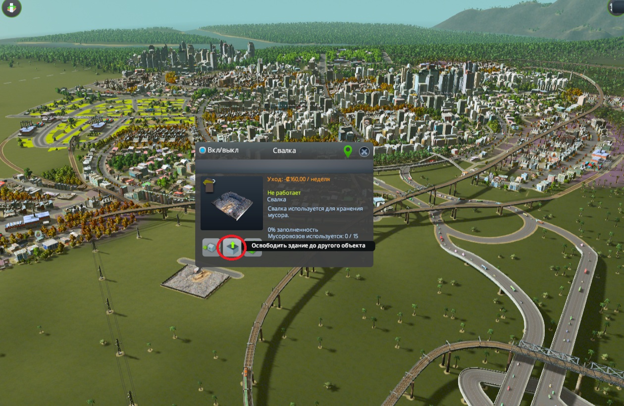 Нажимаешь на свалку - очистить объект, со временем её вывезут