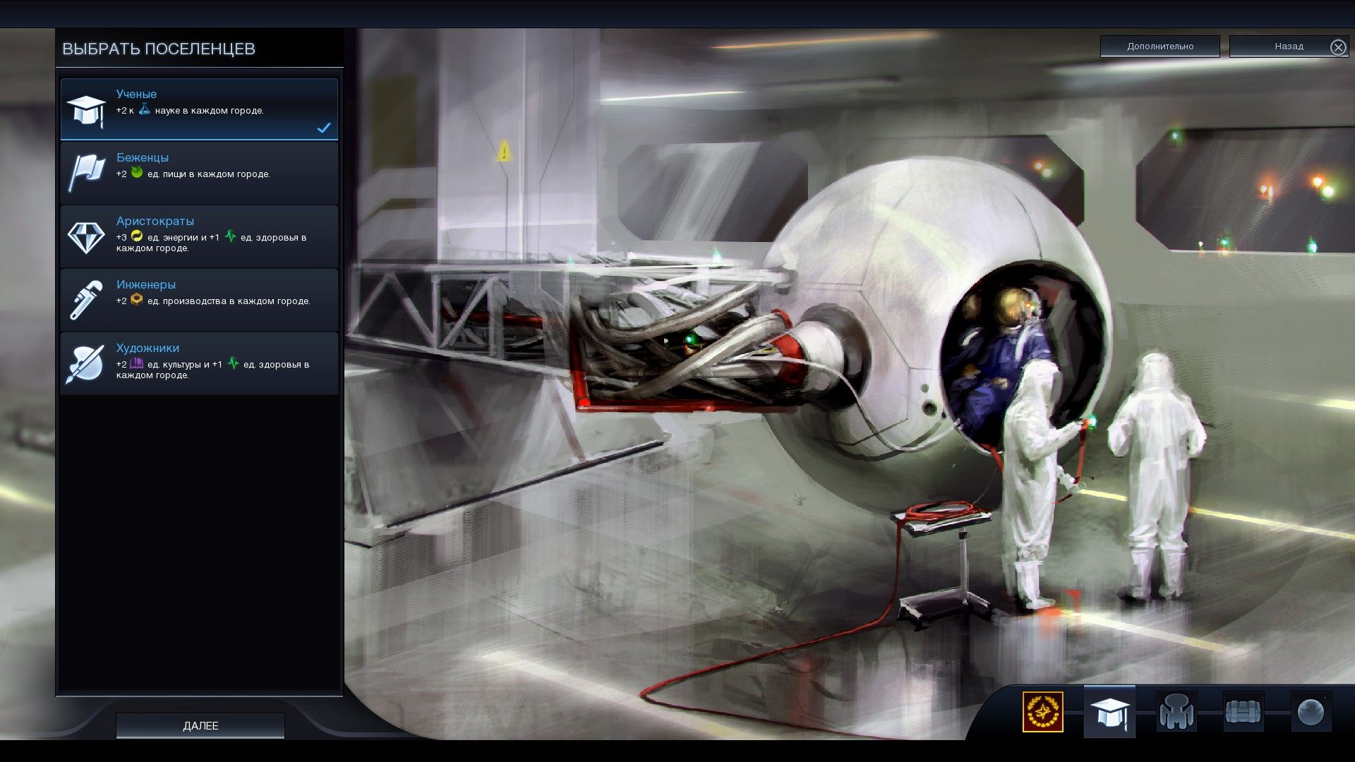 С этим, кстати, тесно связано третье по счету, но не по важности, дополнение к механике игры — так называемые «Совершенства». Совершенства — это глобальные варианты развития цивилизации, основанные на философских воззрениях на то, к чему должно стремиться человечество. Совершенств в игре всего три (можно добавить «пока три» — дополнения с новыми философиями просто просятся в разработку) — «Чистота», «Гармония» и «Превосходство».
