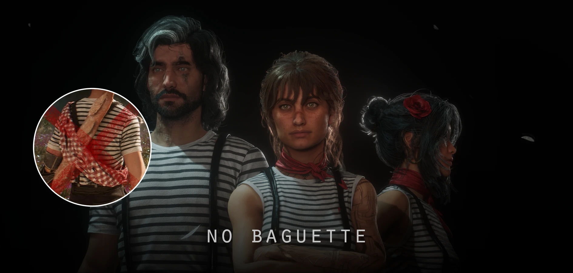 Мод удаляет багет из костюма «Багет» со спины всех персонажей или у определенных персонажей.