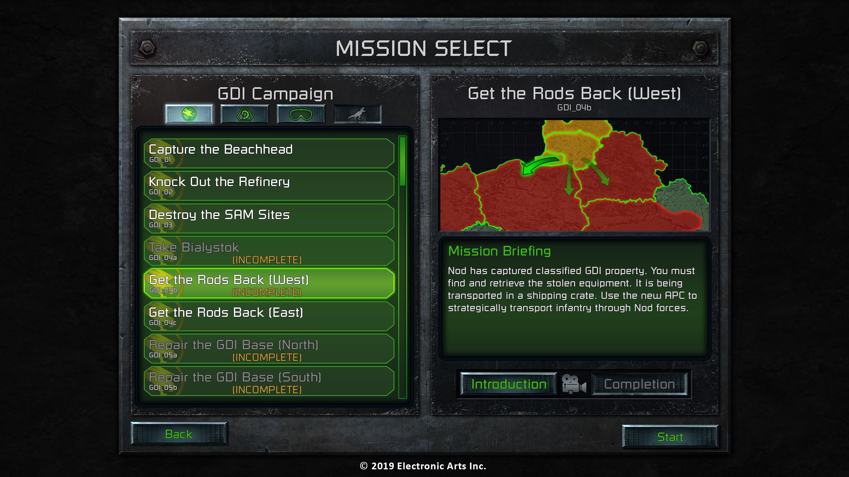Ремастер стратегии Command & Conquer получит новый, более удобный экран выбора миссий, также позволяющий быстро просматривать ролики, связанные с пройденными этапами. Об этом продюсер проекта Джим Весселла из Electronic Arts сообщил на Reddit.
