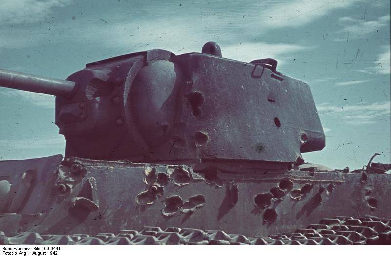 Летом 1941 года танк КВ громил элитные части Вермахта так же безнаказанно, будто бы он выкатился на Бородинское поле в 1812 году. Неуязвимый, непобедимый и запредельно мощный. До конца 1941 года во всех армиях мира вообще отсутствовало оружие, способне остановить русское 45-тонное чудовище. КВ был в 2 раза тяжелее самого крупного танка Вермахта. Броня КВ – прекрасная песня стали и технологий. 75 миллиметров стальной тверди со всех ракурсов! Лобовые бронелисты имели оптимальный угол наклона, что еще более увеличивало снарядостойкость брони КВ – немецкие 37 мм противотанковые орудия не брали ее даже в упор, а 50 мм орудия – не дальше 500 метров. В то же время длинноствольное 76 мм орудие Ф-34 (ЗИС-5) позволяло с любого направления бить любой немецкий танк того периода с дистанции 1,5 километров. Если бы бои, подобные легендарному бою Зиновия Колобанова, происходили регулярно, то, 235 танков КВ Южного военного округа могли полностью истребить Панцерваффе еще летом 1941 года. Технические возможности танков КВ в теории позволяли это сделать. Увы, не все так однозначно. Вспомните – мы говорили, что танки редко воюют с танками… Кроме неуязвимого КВ, у Красной Армии был еще более страшный танк - великий воин Т-34. "…Нет ничего страшнее, чем танковое сражение против превосходящих сил противника. Не по численности - это было неважно для нас, мы привыкли к этому. Но против более хороших машин - это ужасно... Русские танки так проворны, на близких расстояниях они вскарабкаются по склону или преодолеют болото быстрее, чем вы повернете башню. И сквозь шум и грохот вы все время слышите лязг снарядов по броне. Когда они попадают в наш танк, часто слышишь оглушительный взрыв и рев горящего топлива, слишком громкий, чтобы можно было расслышать предсмертные крики экипажа…" - мнение немецкого танкиста из 4-й танковой дивизии, уничтоженной танками Т-34 в бою у Мценска 11 октября 1941 года.