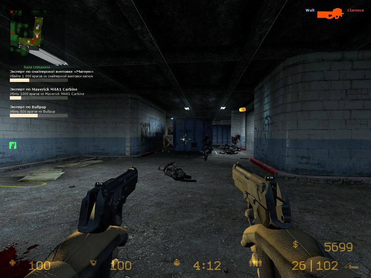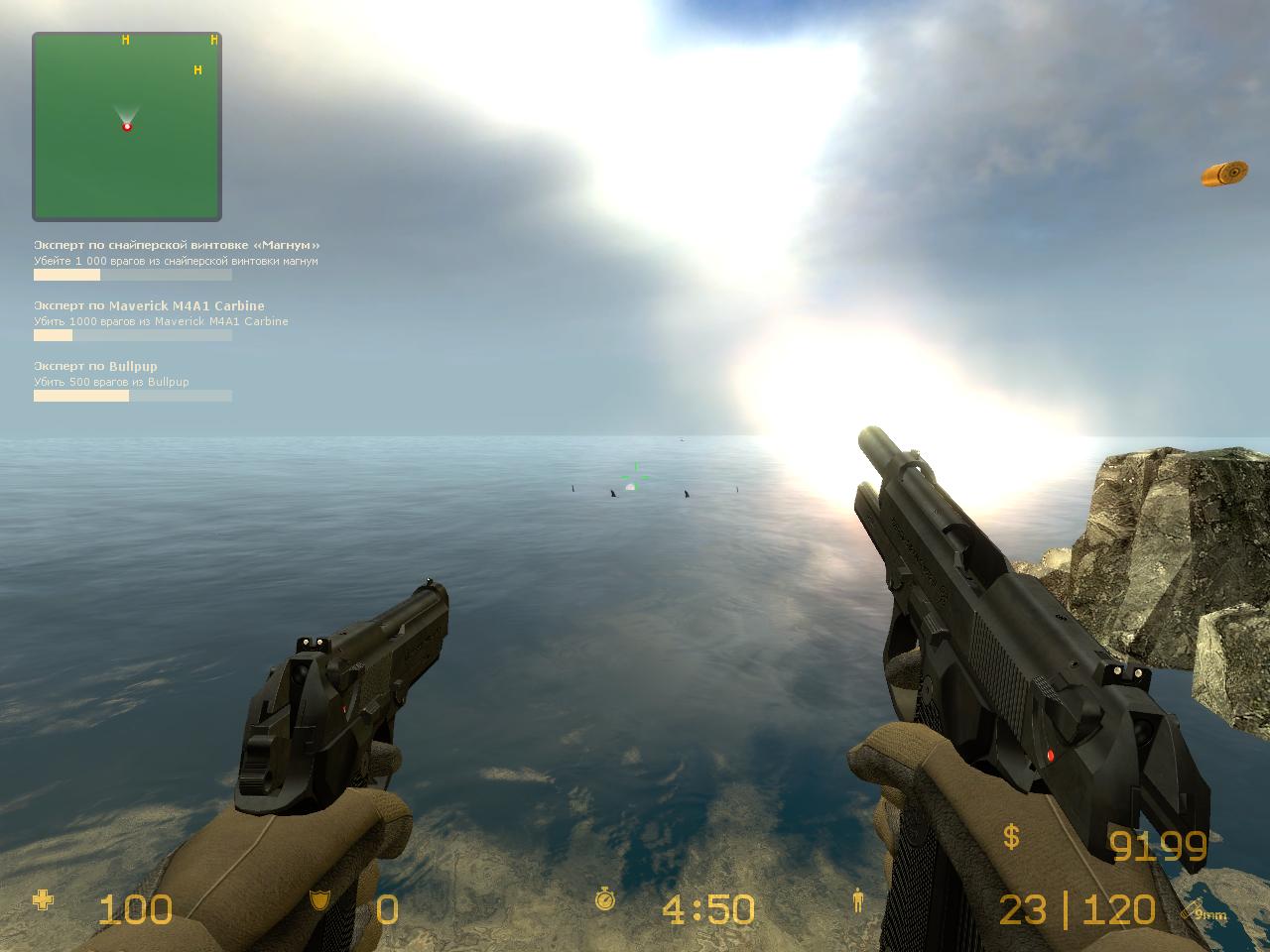Две черные беретты заменяют дуал элиты у террористов,так же присутствует модель мира.