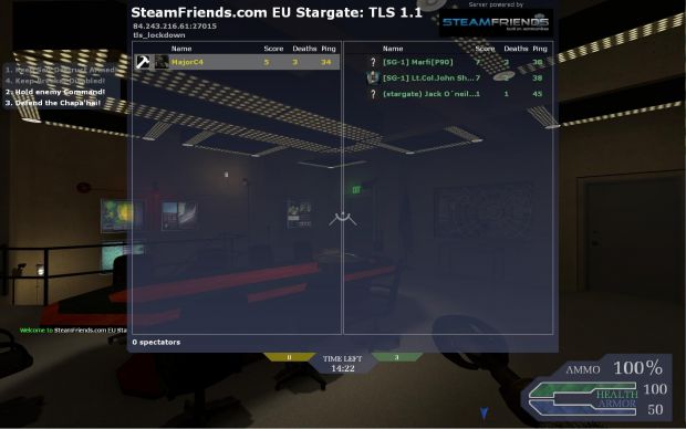 Stargate: The Last Stand-Модификация для Half-Life 2,CSS обещая принести все лучшее из Stargate Кино и ТВ-Шоу в игровой мир. Мод будет Многопользовательской игры упором на сухопутные. Используя уникальный игровой стиль игры игроки будут в буквальном смысле, чтобы заставить их Стоять до Последнего. Посетите нас на нашем IRC на канал #stargatetls на GameSurge!