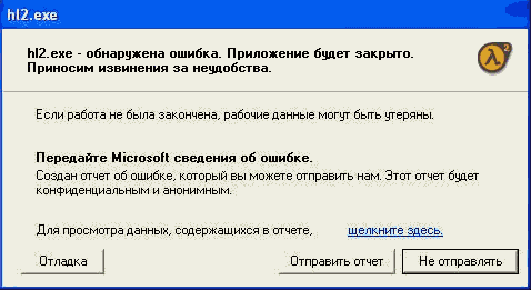 Надо было данные отчёта просмотреть. Если ошибка с shaderapidx9.dll, то посмотри здесь - http://supportwiki.steampowered.com/ru/Setting_Game_Launch_Options - как поставить параметр запуска игры. Тебе нужно добавить параметр -32bit