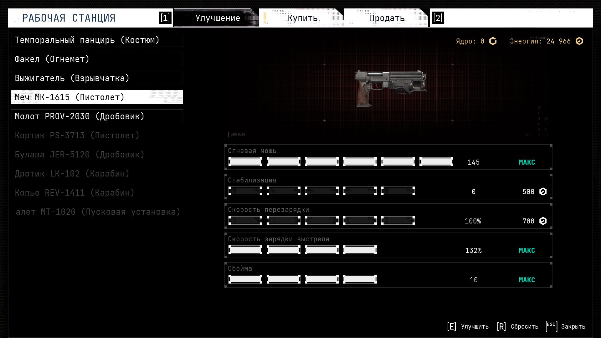 Второй пистолет Кортик все-таки получше будет. И нафига дробовику Стабилизация, все-равно в основном в упор стрелять. А у пистолета наоборот не вкачано, где целиться надо точно.