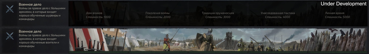 «Традиции оруженосцев» увеличивает прирост опыта образа жизни «Военное дело» на 10%. Вы увидите похожие бонусы в других деревьях для других образов жизни. Это в целом приятные бонусы, которые складываются с вашими бонусами от образования.