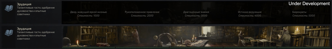 «Бюрократы» повышает базовый прогресс и влияние навыка советников на задания совета на 10%. Да, это значит, что каждое задание советник будет выполнять на 10% быстрее. Конечно, это тем полезнее, чем более умел ваш советник, но с хорошими гостями, которых привлекает ваш двор, вы вряд ли останетесь без подходящих кандидатов!