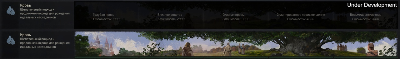 «Спланированное происхождение» позволяет вам выбрать одно из следующих свойств и сделать его наиболее частым среди членов вашей династии: красота (1 уровень), сила (1 уровень), ум (1 уровень), плодовитость (увеличивает плодовитость на 50%), гигантизм, карликовость, псориаз или альбинос. Это просто потрясающий вариант для отыгрыша, потому что, например, с гигантами получатся очень интересные истории. В реальности были династии, прославившиеся наличием определённого «свойства», приятного или не очень, и это наследие как раз об этом. Вероятность того, что у новорождённого появится это свойство, составляет примерно 2%, так что вам всё равно придётся постараться, чтобы сделать это свойство по-настоящему распространённым.