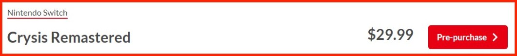 В начале этого года Crytek объявила, что они выпустят Crysis Remastered на современные платформы, включая Nintendo Switch. Это первый раз, когда серия выйдет на платформе Nintendo. Первоначальный план состоял в том, чтобы выпустить игру 23 июля 2020 года, но теперь все версии игры были перенесены на несколько недель.