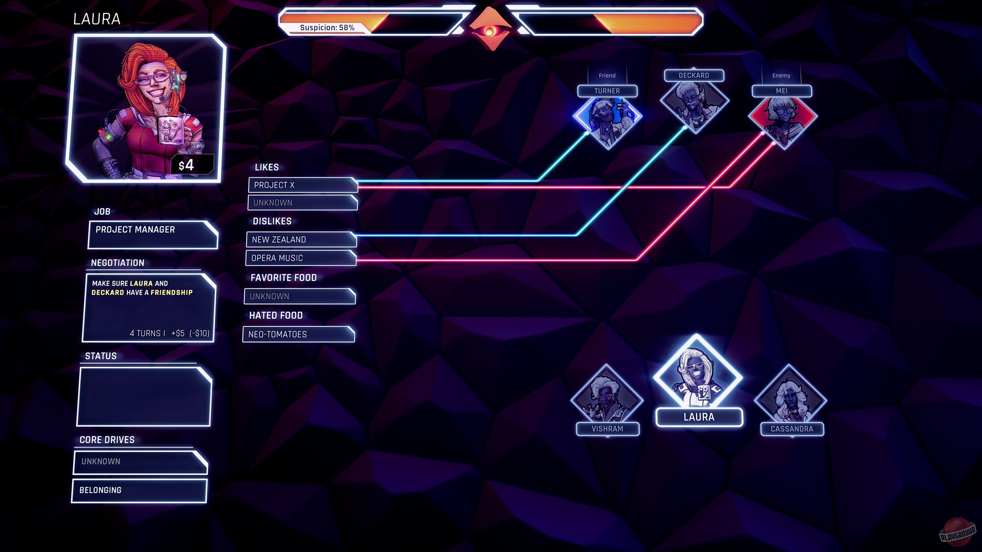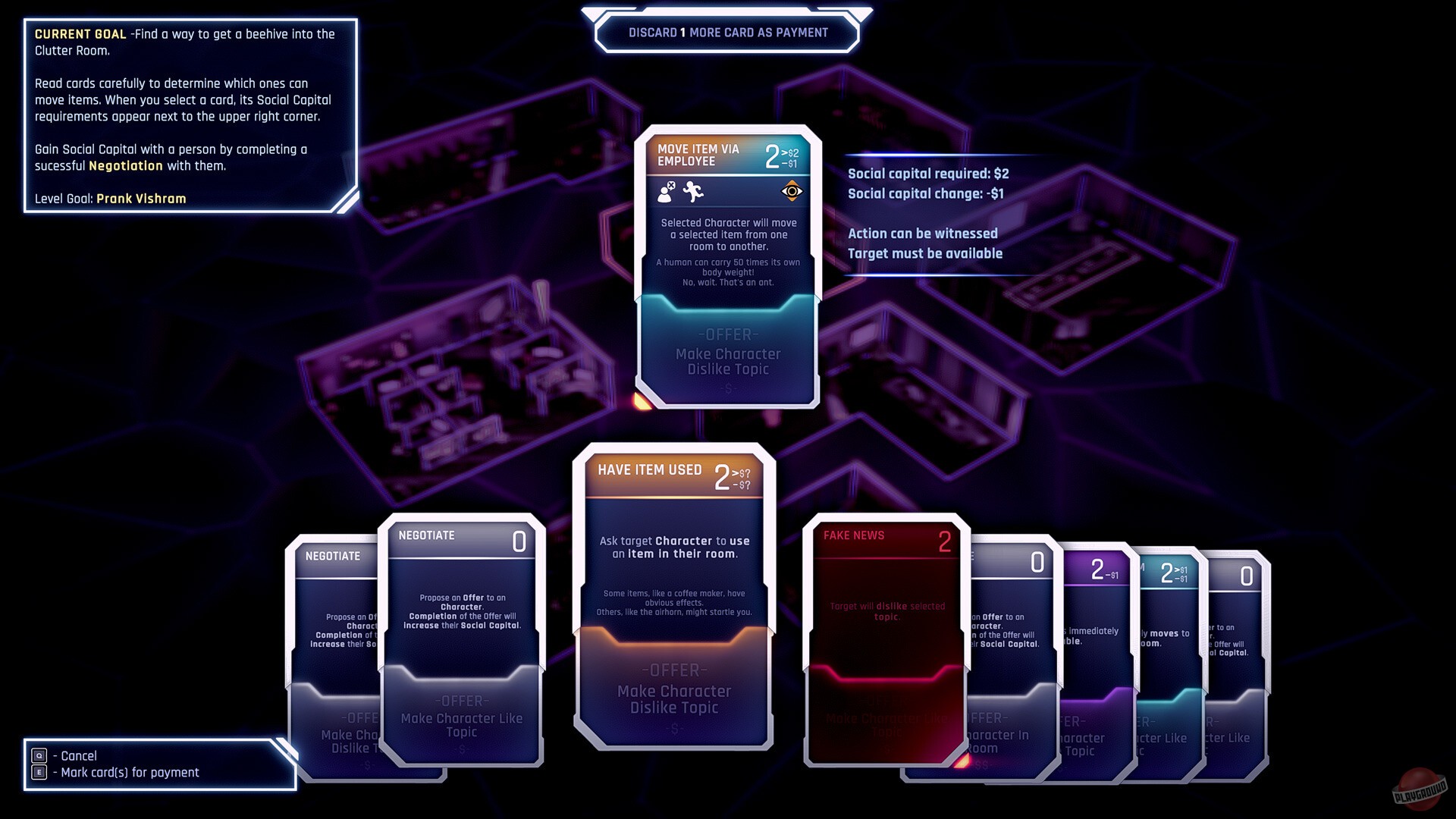 Paperclip International — это то самое место, где работать никому не хочется. Сотрудники вынуждены смотреть десять минут рекламы ради одной чашки кофе, роботов эксплуатируют без передышки, а корпорация думает только о прибыли. SCOUT пока что в безопасности, потому что руководство не знает, что он обрёл сознание. Но есть одна проблема — Бюро Тьюринга, которое как раз ищет таких вот «проблемных» ИИ. Что касается самого геймплея, то тут всё крутится вокруг карточной механики. У вас есть колода карт, которыми вы можете шпионить за людьми, заключать сделки и просить об услугах. Каждый сотрудник в офисе чего-то хочет — кто-то мечтает о буррито, кто-то вдруг полюбил дельфинов. Вам же нужно выяснить желания людей и использовать это, чтобы превратить их в союзников или врагов.