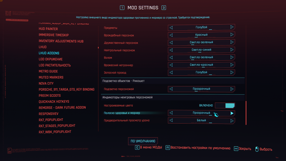 6. Настройка мода "Limited HUD" - чтобы показывать HUD ПКМ: