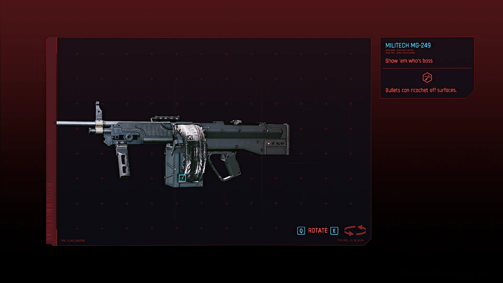 - Game.AddToInventory("Items.Militech_MG249", 1)