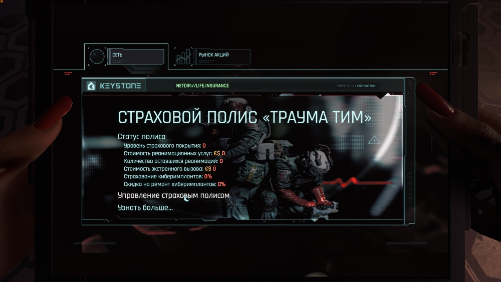 Теперь в игре нет сохранений, только в вашей квартире рядом с кроватью или купить страховой полис на компьютере и через телефон сохранить ваши биометрические данные. Это и будет ваше сохранение! Если умираете и вас куплен полис, то вас реанимирует Траума Тим и окажетесь дома на последнем сохранении или если вы через телефон сохранили биометрические данные, то в точке последнего сохранения. Если вы умираете без полиса, то ваши импланты будут повреждены и вас реанимируют, но вы окажетесь в госпитале Траума и ваши вещи не факт , что останутся с вами. Без денег и покупки полиса сохранится нельзя и в квестовые задания лучше не начинать пока не накопите денег. После каждой смерти ва прокачиваете персонажа, так что смерть приносит пользу. Также необходимо купить подписку на страховку на транспортные расходы, чтобы получить скидку. Боевая система более сбалансированная, потому что в бою ваши импланты могут повредится вместе с ячейкой импланта. Ремонтировать все импланты прийдется у риперов, чем выше ваша броня, тем меньше шанс, что ваш имплант повредится. Сборка рассчитана на прохождение с самого начала, но если начали играть со своего сохранения вдруг, то для активации системы страхования жизни необходимо поспать в своей квартире.