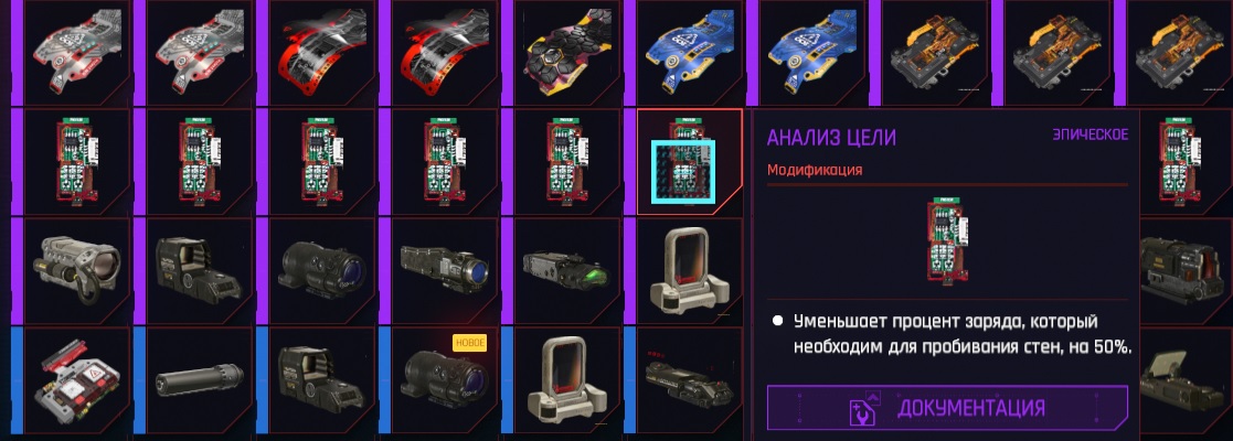 Модификации можно ставить не только к оружию но и к имплантам в теле и одежде. Однако, для того, чтобы поставить модификацию, понадобится ячейка, которая доступна начиная с синей редкостью снаряжения и имплантов. К примеру, если у вас будет пистолет, у которого редкость белая(обычная), вы не сможете поставить ни одной модификации.