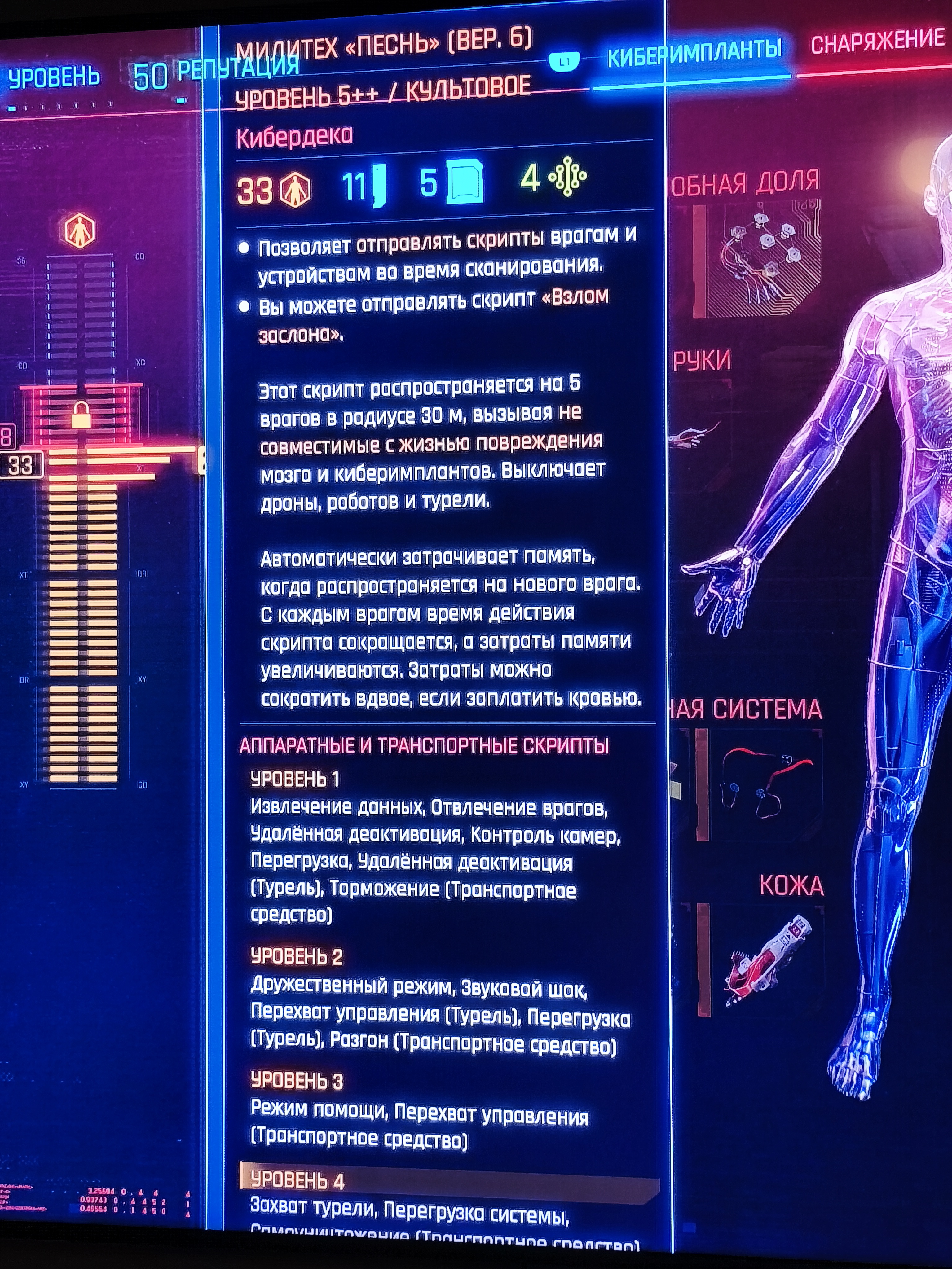 Подскажите пожалуйста кто-нибудь, как на PS пролистнуть это описание кибердеки вниз? Все кнопки и варианты перепробовал, и ничего не получается. Не то чтобы это было очень сильно важно, но всё же хотелось бы знать... Вот например в этих случаях не видно ни модификаторы имплантов, ни их цену...