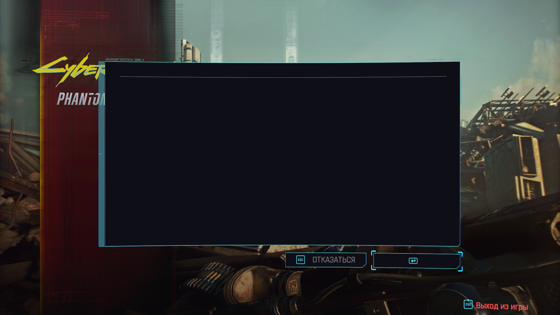 У кого такая проблема возникает и стояла неироозвучка (может даже другие моды, не в курсе как с ними конфликтует), переходите по этому пути Cyberpunk 2077\archive\pc\mod от туда убирайте файлы, запускаете игру, принимайте соглашение, закрывайте игру и возвращайте файлы, и готово, все работает