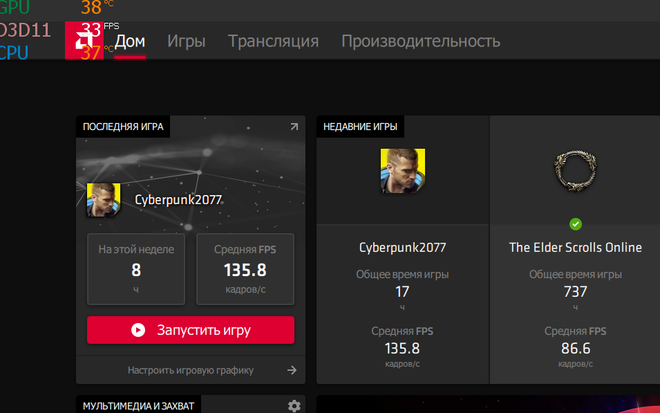 И у меня в большинстве игр работает (постоянно им пользуюсь) - кроме некоторых старых на DirectX 8 (там спасает Bandicam), и новых с "прикрученным" DX12. Если в игре можно переключить DX с 11-го на 12-й - мониторинг сразу выключается, а запись видео (если работала) прекращается.