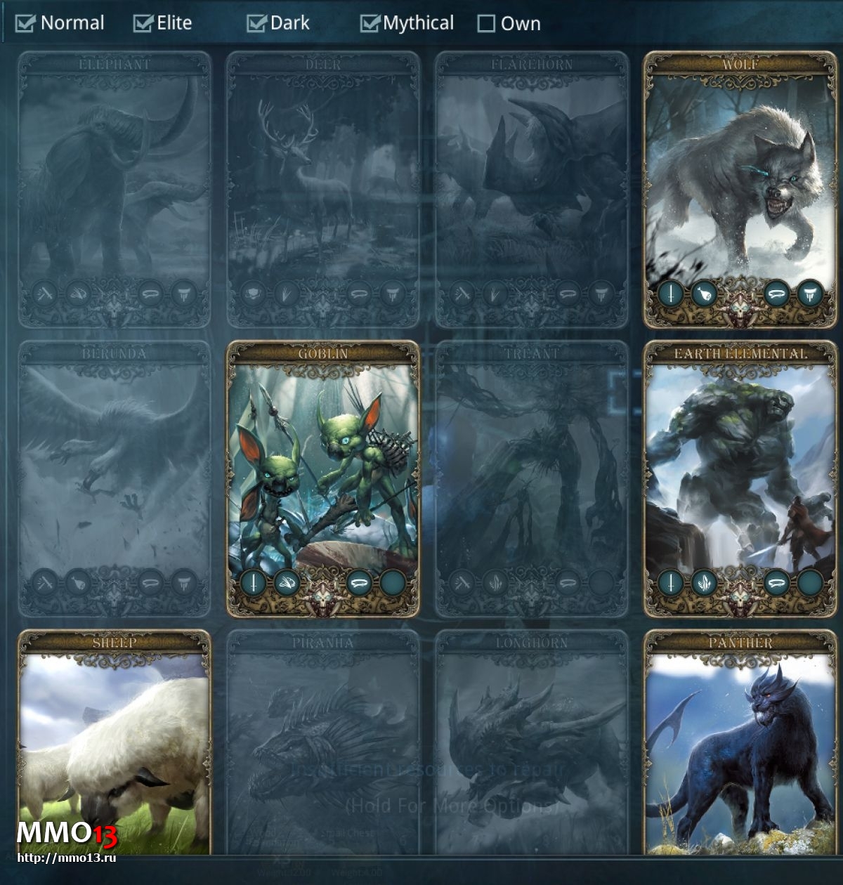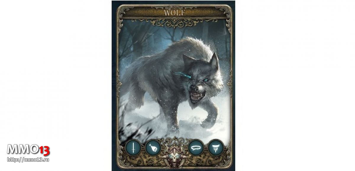 Выше приведен пример карты волка из Dark and Light. На ней вы можете увидеть изображение меча, что свидетельствует о том, что это существо невероятно агрессивно и нападает на всех, кого только встретит на своем пути. Он плотояден, его также можно приручить и даже оседлать при наличии необходимых предметов снаряжения.