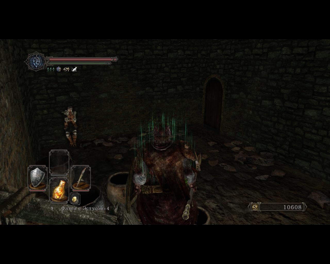 На этой локации, ореинтировочно на одном из самых верхних этажей, есть коридо, который упирается в стену и поворачивает в обе стороны, влево проход виден хорошо, а вот в право я честенько не замечаю. Уже в который раз прохожу игру, а все время забываю, где этот проход. Если в него войти, будут видны каменные мостки с обвалом по центру, на противоположной стороне будет стаять сексуальная огненная магичка, если смотреть прямо на нее, то нужно сразу податься вправо, как только вышел на мостки, там не будет перил, и ты сможешь спрыгнуть на каменный козырек, там и будет эта дверь.
